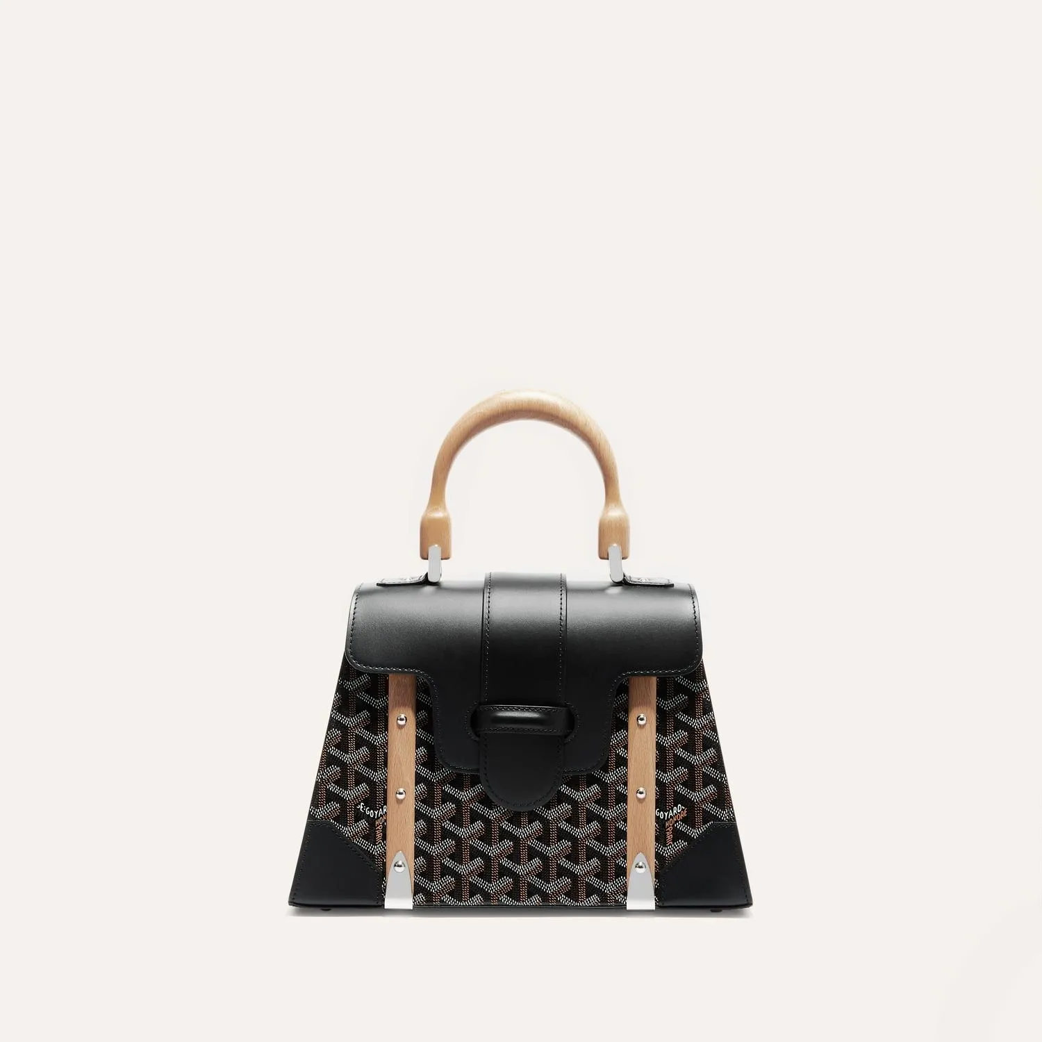 The Saïgon bag is one of Maison Goyard’s emblematic pieces as it inherits all our trunk-making signature codes like the wood batons, leather corners and trunk rivets. In this structured PM format, the Saïgon bag can be worn with or without a strap for an elegant evening style.